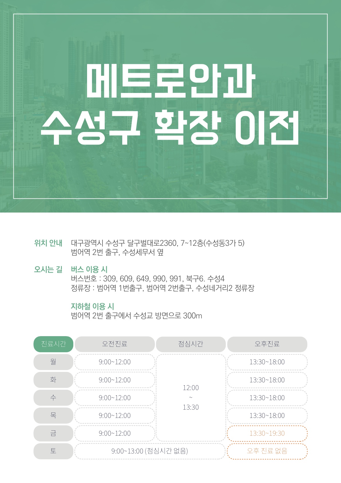토 : 09:00 - 13:00
